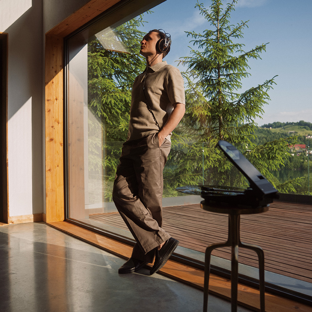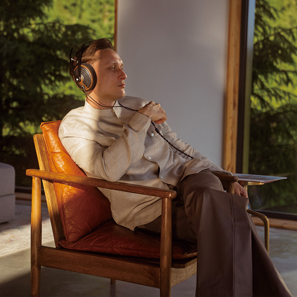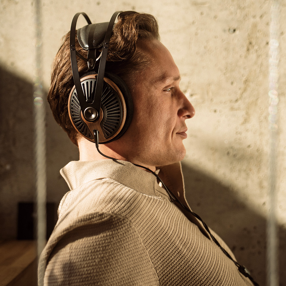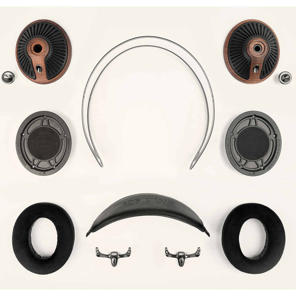 木のぬくもりが感じられるウォールナット材のイヤーカップと、放射状に広がるPC-ABSグリルが、見る角度によって表情を変え、いつまでも飽きのこない、特別な存在感を放ちます。