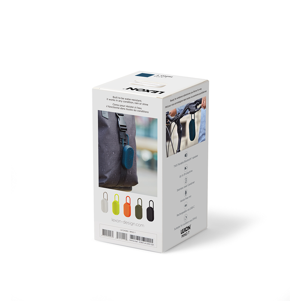 アクティブな使用に合わせてデザインされ、内蔵カラビナでバッグや自転車、ギアに簡単に取り付けられるため、いつでも音楽を手元で楽しめます。スタイリッシュでモダンなデザインのMino Tは、アウトドアだけでなく、インテリアとしてもお部屋に自然に溶け込みます。どこでもパワフルサウンド