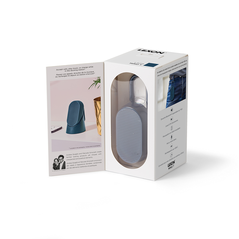 Mino Tは多機能でスタイリッシュなアクセサリーです。ハンズフリー通話や音楽再生はもちろん、USB-Cケーブルで充電も可能。使わないときは充電ステーションに置けば、インテリアに溶け込むおしゃれなデコレーションとしても楽しめます。 -