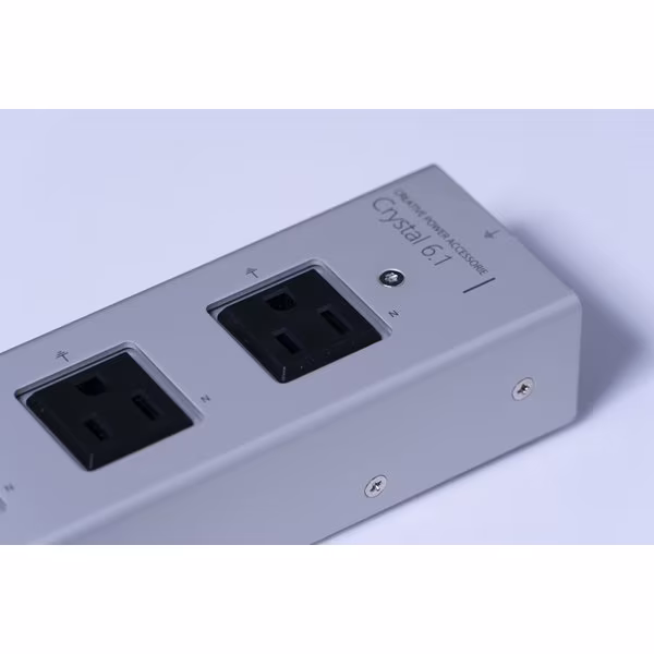 Crystal6.1は、複雑なシステム構成や多くのオーディオ機材を所有するヘビーユーザに対し効率的なコンセント数を提供できるモデルで、接地極付の3Pコンセント6口+2Pコンセント1口が装備されています。