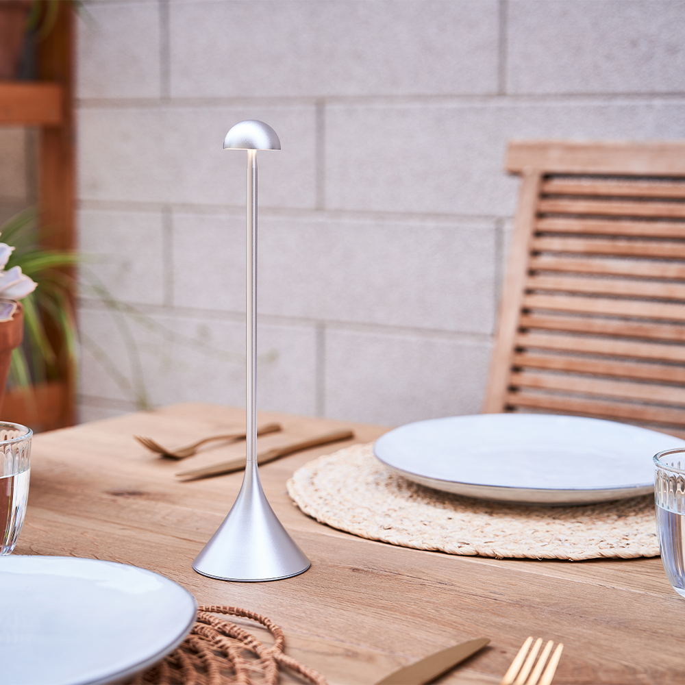 最大10時間のバッテリー寿命を持つSteliは、USB-Cまたはワイヤレスで簡単に充電できます。テラス、ダイニングテーブル、デスク、ベッドサイドなどの雰囲気を高めるのに最適で、どんな空間にもシームレスに溶け込みます。直感的な操作を指先で