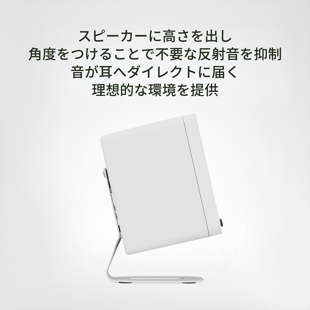 安定性に優れたリアマウント構造を採用することで、スピーカーの存在感を引き立てる浮遊感のある佇まいを演出しながら、背面入力へのスムーズなアクセスも確保しています。