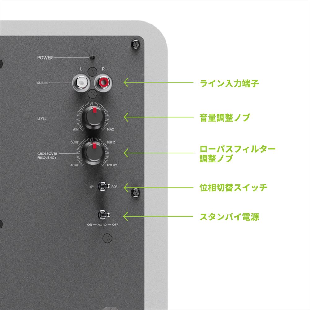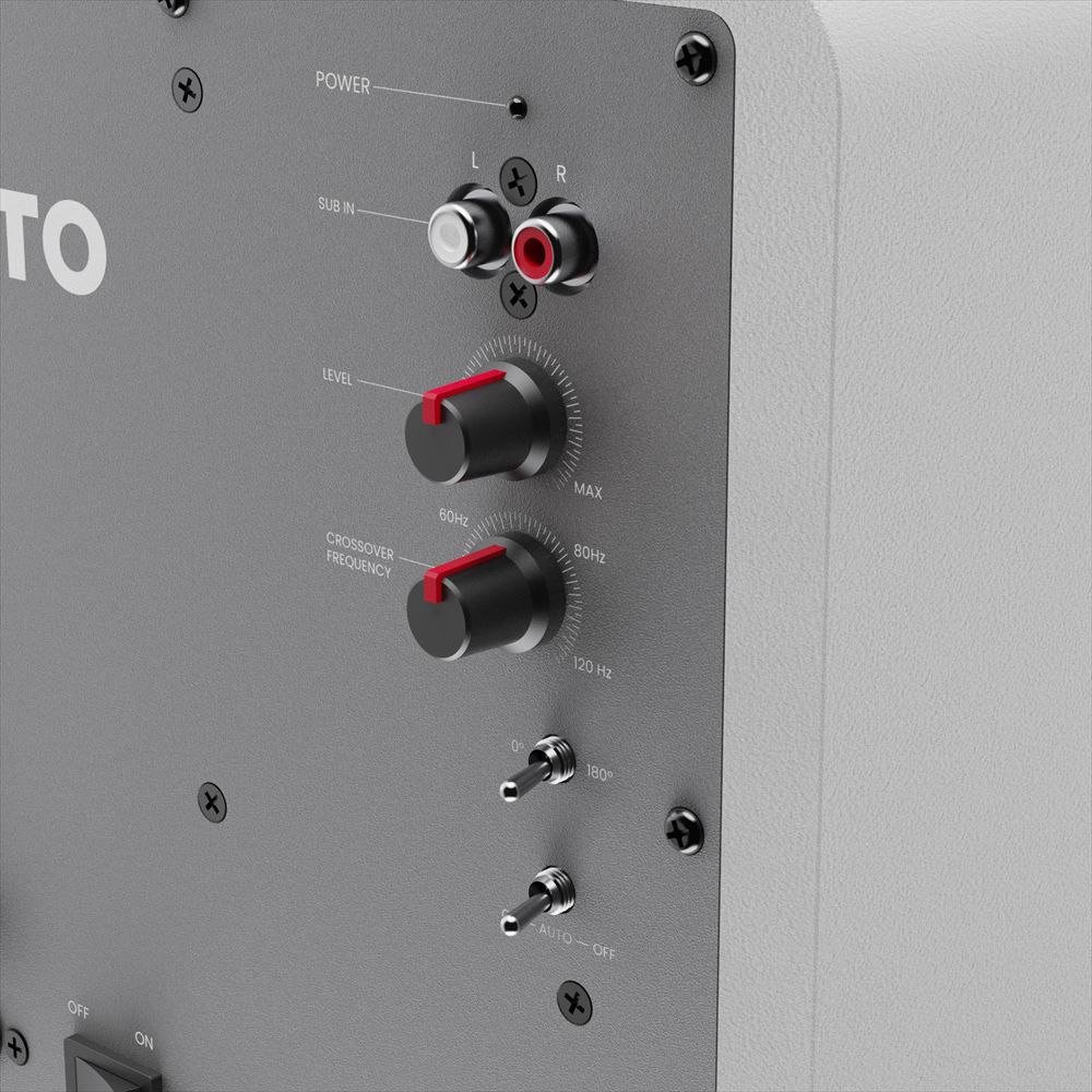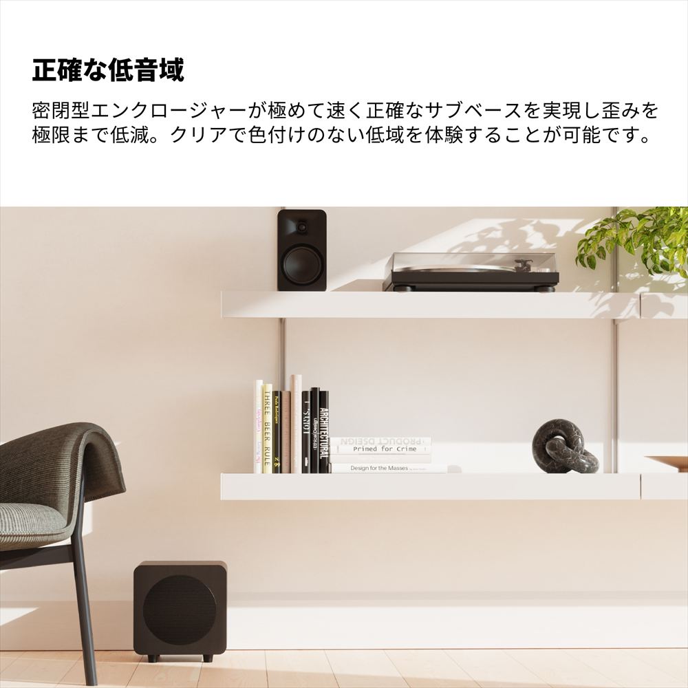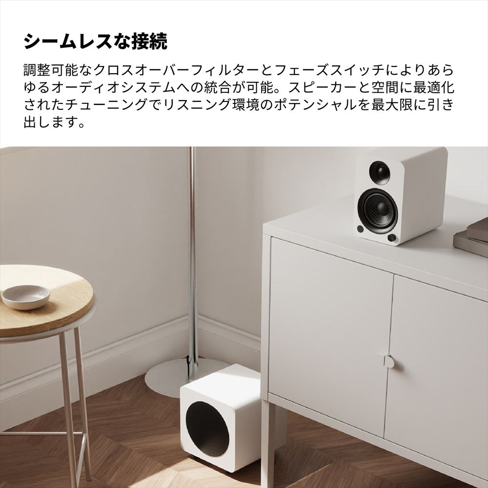 シンプルで洗練されたデザインはKantoスピーカーと調和し、省スペース環境でも迫力ある低音を再生します。外観・性能ともにトータルで最適化されたサブウーファーです。