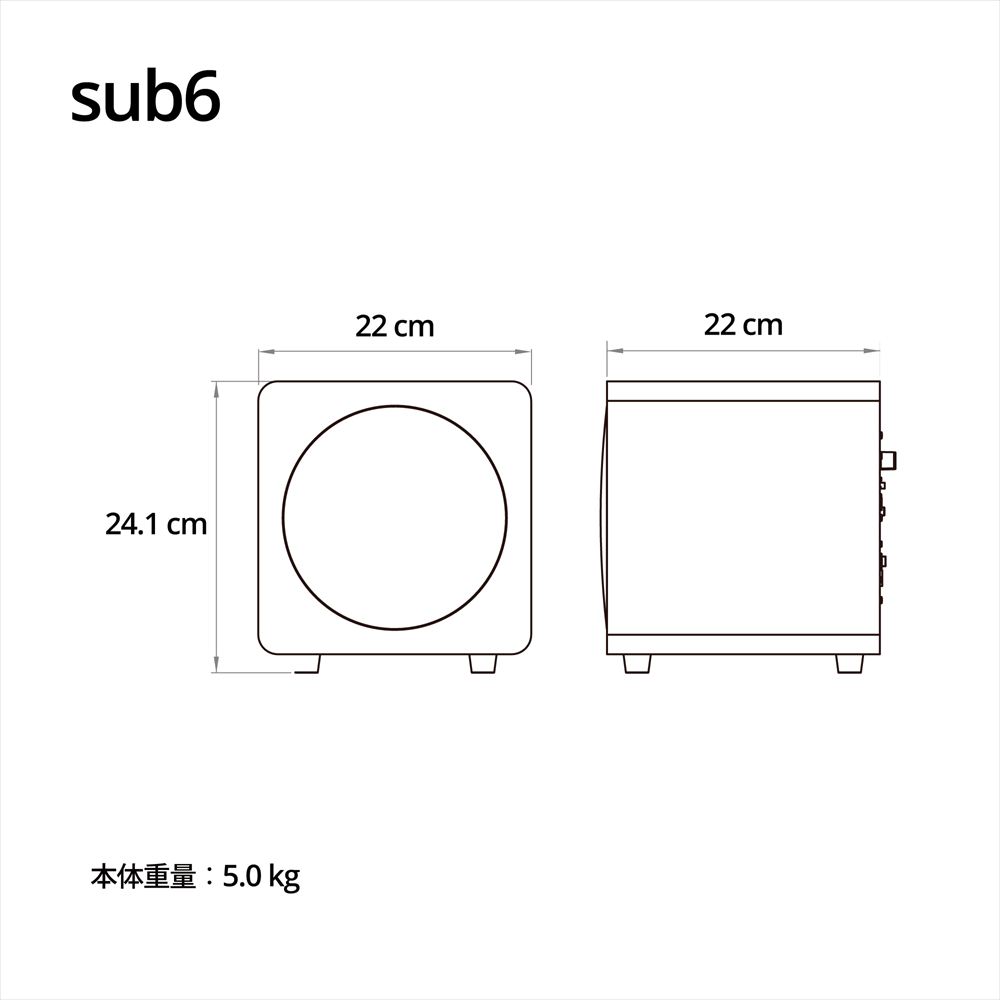 Sub6は、音楽・映画・ゲームに深みと明瞭さを加える正確な低音を再生します。